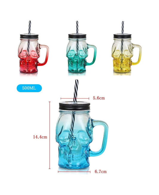 Vaso Jarro Mason en forma de calavera c/ bombilla