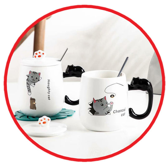 Cuchara Gato Gatito orejas negra y cafe acero inoxidable