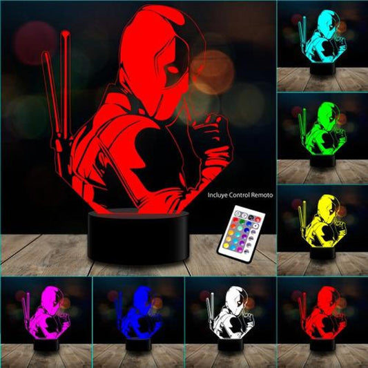 Lámpara Deadpool 3d Acrílico 7 Colores 1 Intermitente