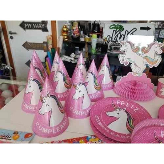 Set Cumpleaños Cotillon Unicornio 10 Niños Rainbow Kawaii
