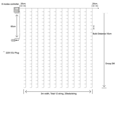 Cortinas Led 3x3 M 320 led Blanco calido decoración