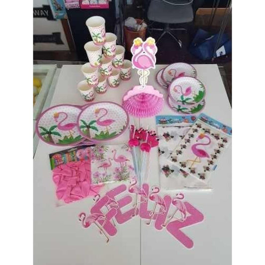 Set Cotillon Cumpleaños Para 10 Flamingo Flamenco