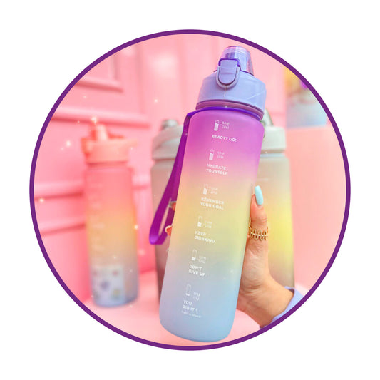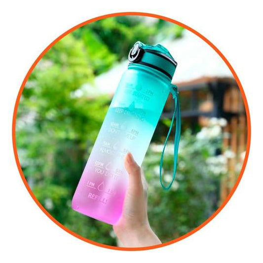 Botella deportiva C/sticker 3D motivadora multicolor kawaii