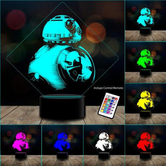 Lámpara 3D Star wars BB8 Control remoto
