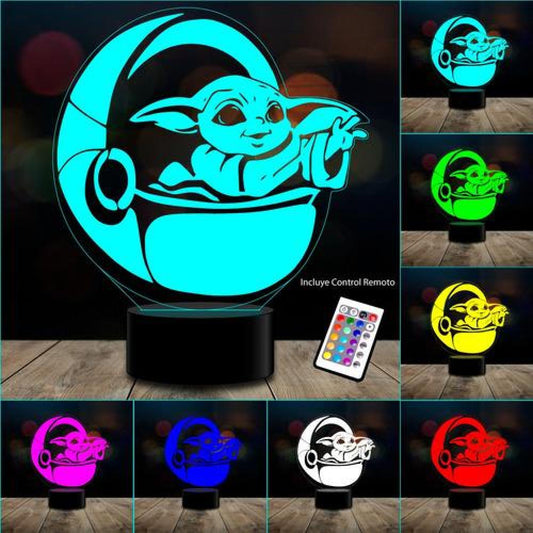 Lampara 3D Baby Yoda star wars c remoto 16 color
