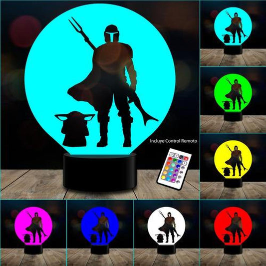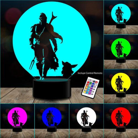 Lampara 3D manda 4 Baby Yoda star remoto 16 color