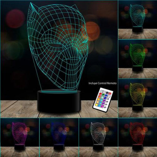 Lámpara 3d Cabeza Pantera Negra Black Panther Marvel Vengado