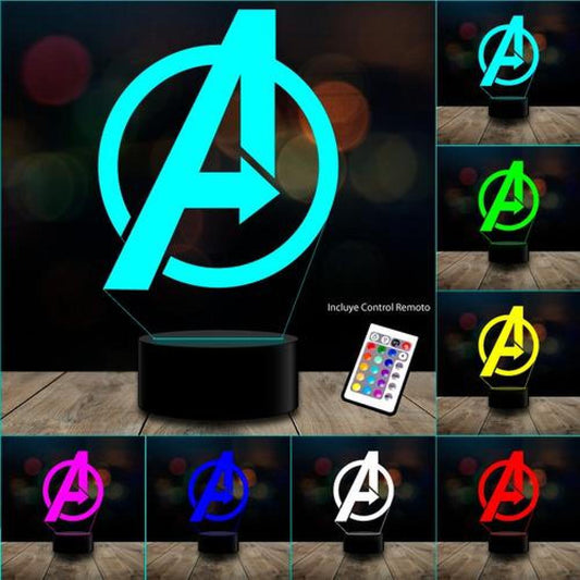 Lampara 3d Avengers logo Marvel Estoykuku c/control remoto