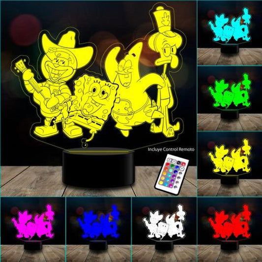 Lampara 3D Bob Esponja y amigos c control remoto 16 colores