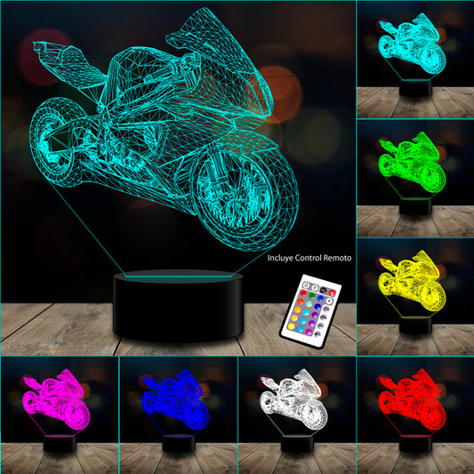 Lámpara 3D Moto motocicleta c/remoto 16 color estoykuku