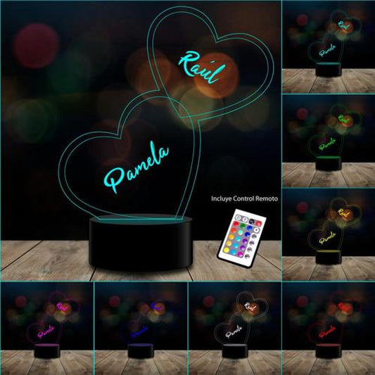Lámpara 3D día del amor corazón personalizables c/ remoto