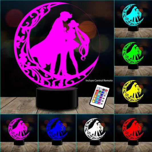 Lampara ilusion 3D Sailor moon yTuxedo Mask control remoto