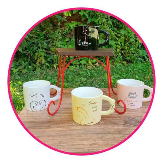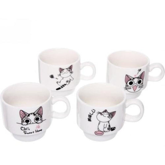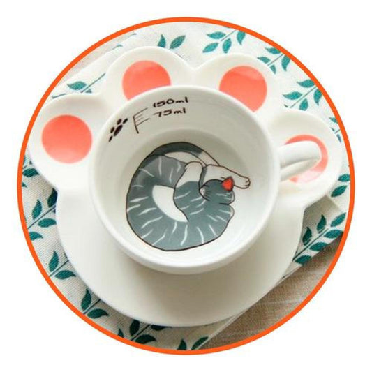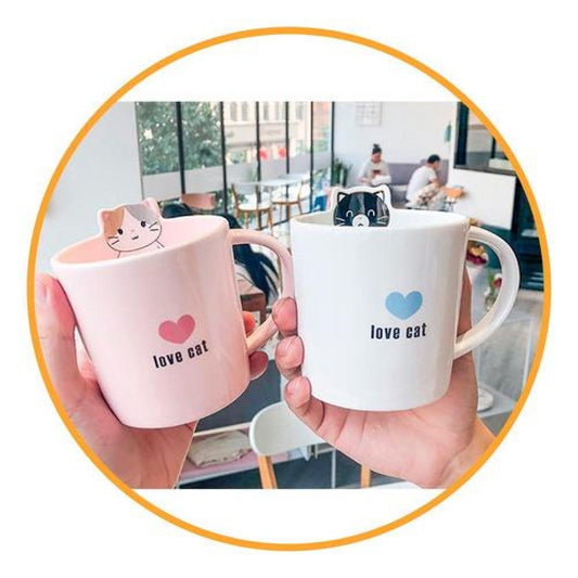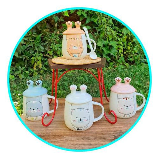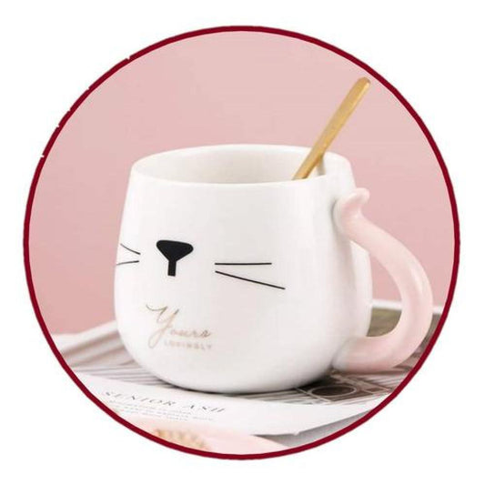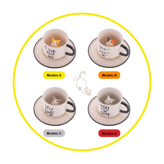 Taza Gatito c/ plato corazón y cuchara Kawaii