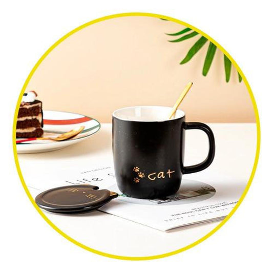 Taza Cerámica gato negro orejas nariz y mango dorado