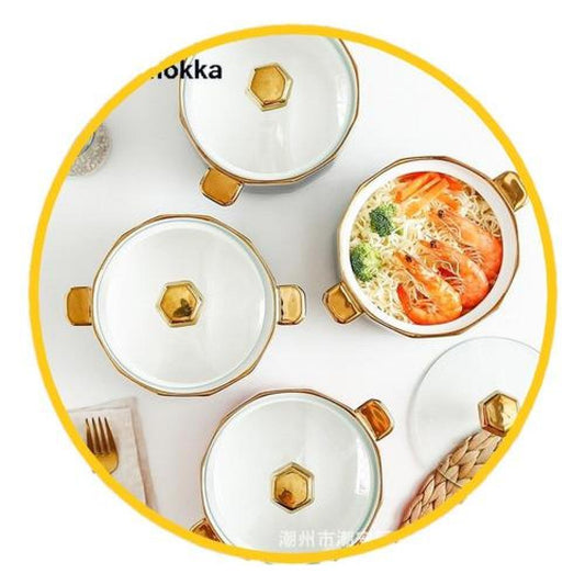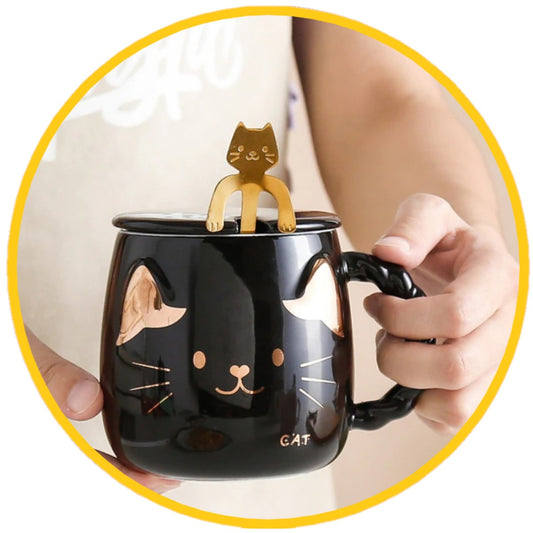 Tazón cerámica gato bigotes orejas dorados c/ tapa- cuchara
