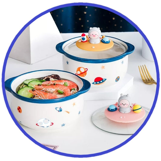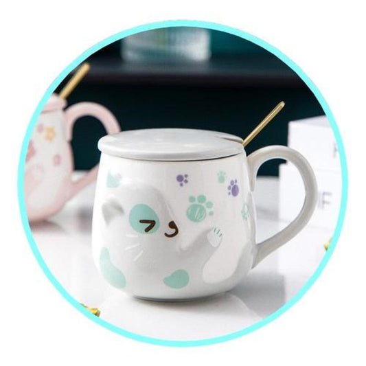Tazón cerámica bebe gatito c/ tapa y cuchara kawaii UwU