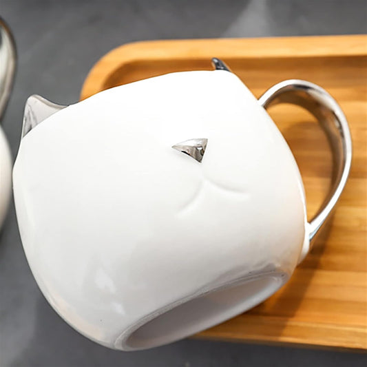 Tazón cerámica gatito gato nariz - orejas y asa plateada
