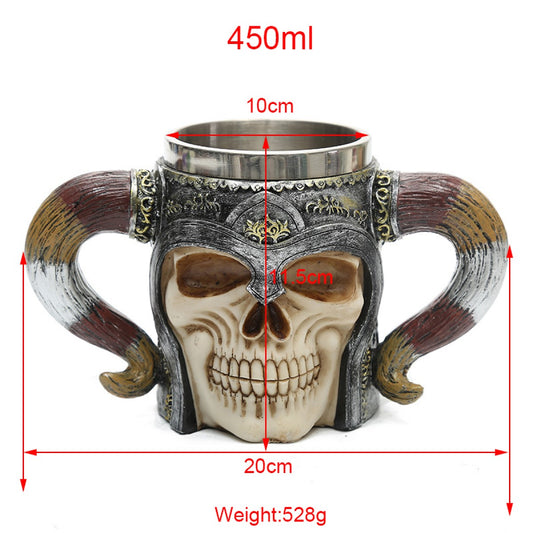 Tazón 3D Resina Y Acero Inox cuernos craneo Calavera Vikingo