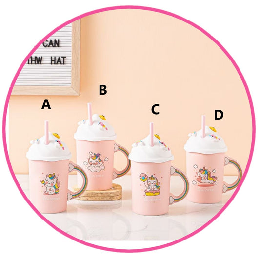 Taza Unicornio Cerámica 3d tapa y bombilla silicona Kawaii