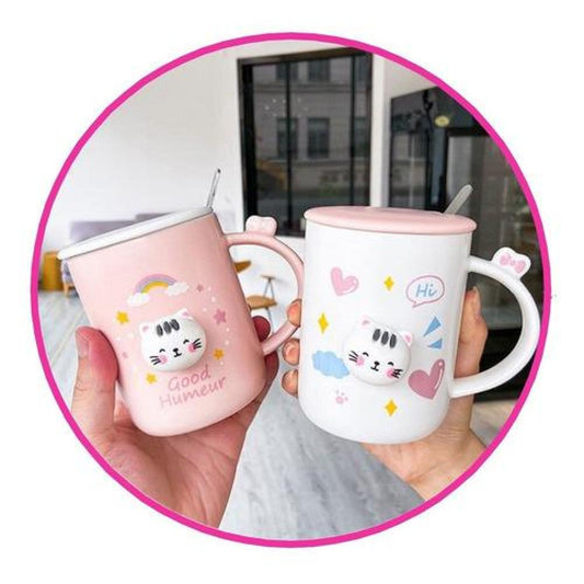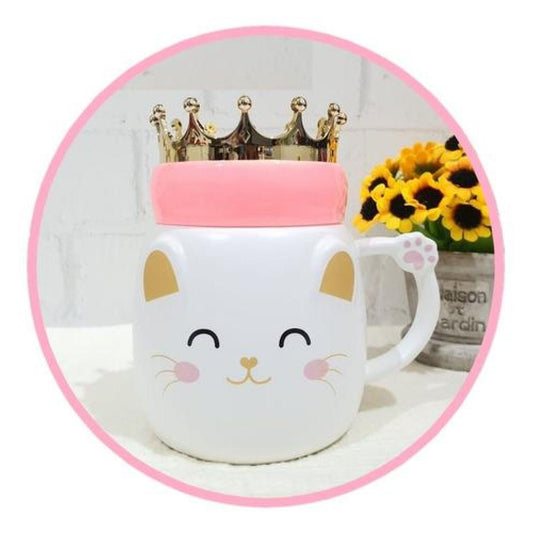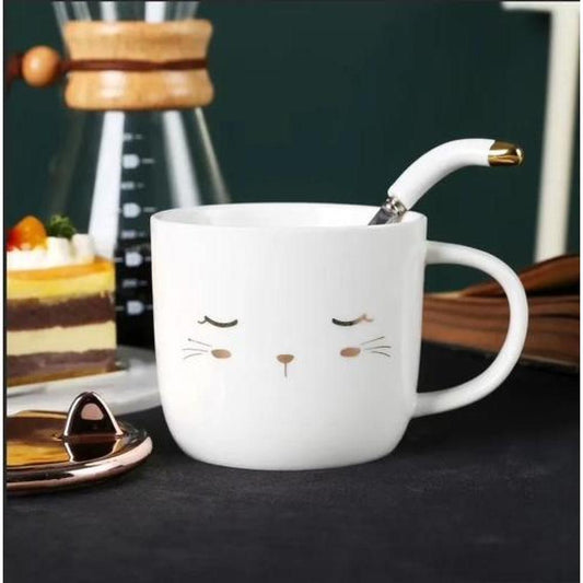 Taza gatito con tapa orejas y cuchara dorado gold