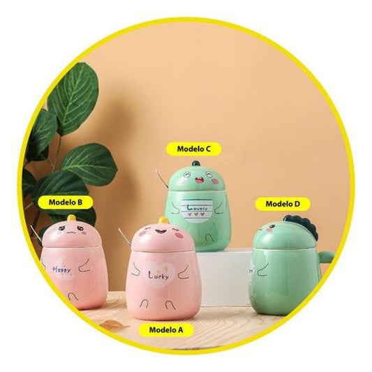 Tazón ceramica gatito Chi c/ tapa cuchara y bombilla