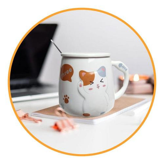 Tazón gatito 3D kawaii con tapa y cuchara