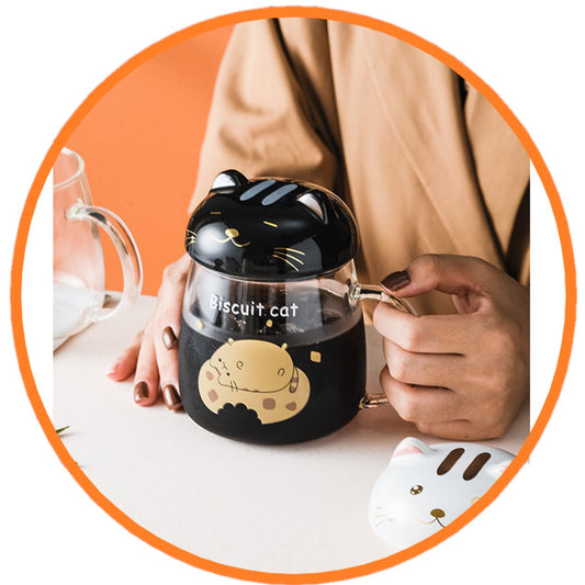 Taza vidrio templado gatito asa cola
