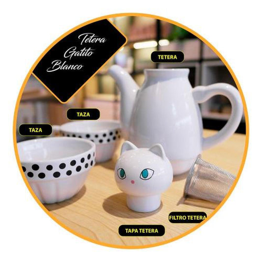 Set Cerámica Té Gatito, Tetera Con Infusor 2 Tazas Gato Cat