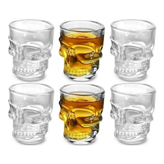 Set De 6 Vasos Vidrio Shot Calavera , Fiesta, Trago Tequila
