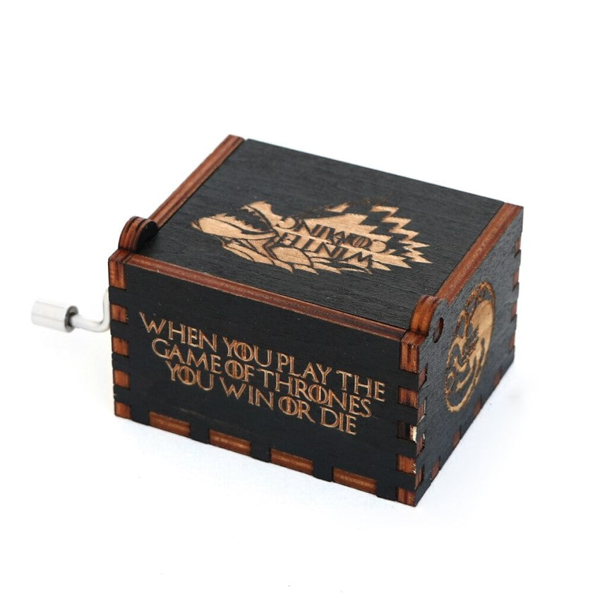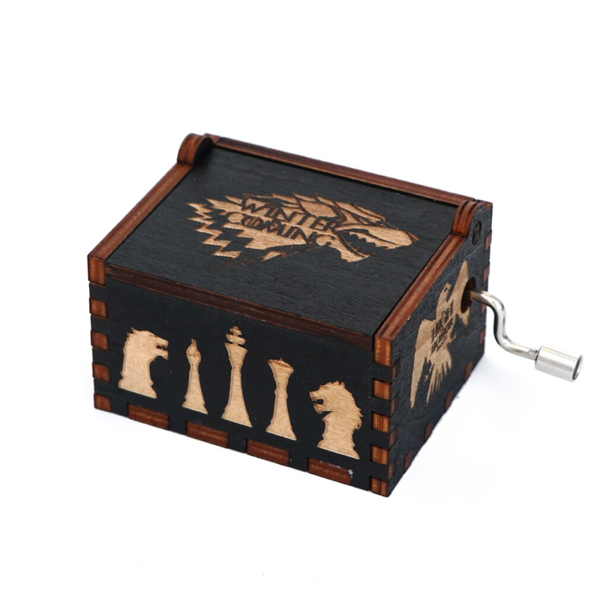 El regalo perfecto para coleccionista o fanáticos de series o películas, una pequeña cajita de madera, que al girar de la manivela deja sonar la banda sonora de tus personajes favoritos.