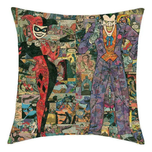 Cojín Harley Quinn. La funda es de impresión de alta calidad, donde se pueden ver colores vivos y bien definidos.