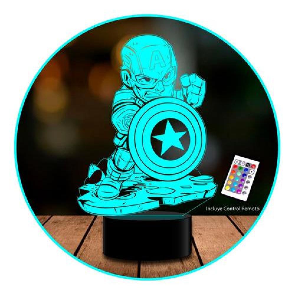 Lampara 3D Capitán América mini escudo remoto 16 color