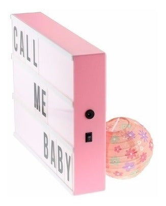 Una sorprendente caja de luz con un diseño a cartelera de cine antiguo, podrás crear tus propios mensajes personalizados o dejar mensajes y es especial para decoración.<br>Material: plástico<br>Color: Rosado, menta y negra.<br>Medidas: 15 x 10,5 x 4 cm<br>Alimentación :3 pilas AA (no incluidas), cable USB<br>Total de 90 caracteres<br><br>Botón de encendido y apagado<br>Presentación en caja.