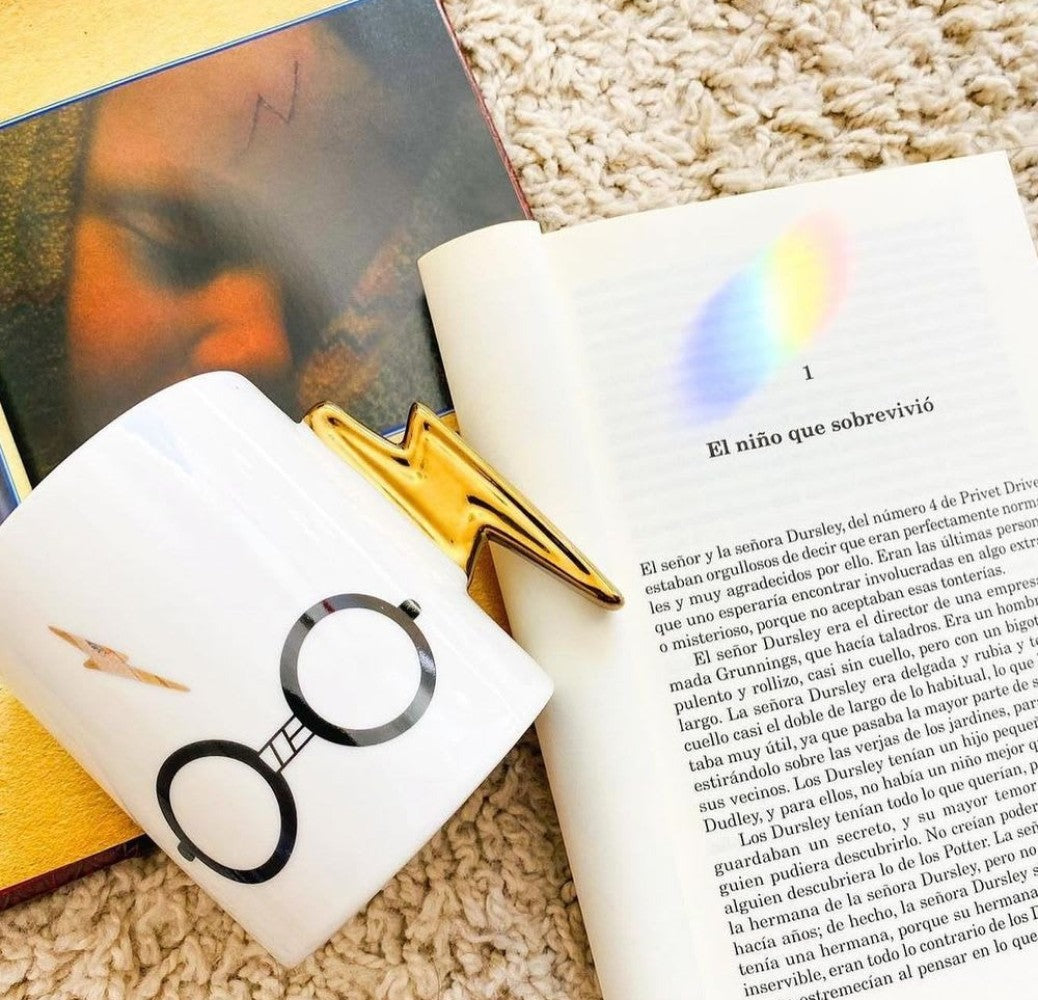 tiene un espectacular diseño basado en su protagonista, Harry, al que muchos conocen como ""el niño que sobrevivió"", tal y como podemos leer en esta taza. También vemos serigrafiados dos iconos tan conocidos como sus gafas redondas y la cicatriz de su frente, que aparece además reproducida en 3D como asa de la taza.